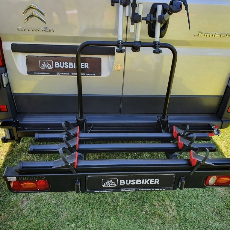 Der BusBiker Fahrradträger ist speziell für Camper Vans und Kastenwagen entwickelt worden und bietet dir maximale Flexibilität, Sicherheit und Komfort – ideal für alle, die ihre Fahrräder (auch E-Bikes) unkompliziert mit auf Reisen nehmen möchten.