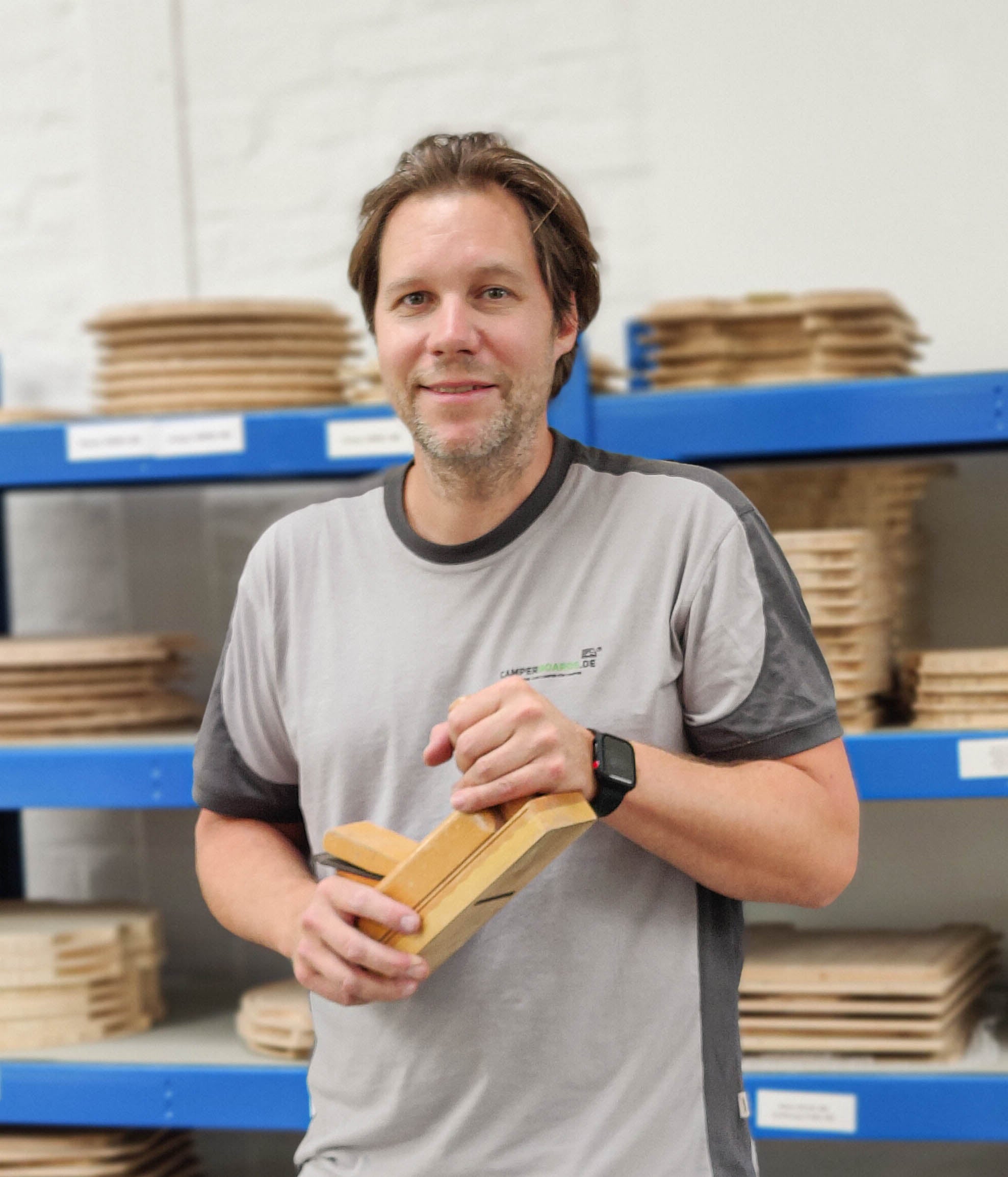 The owner-managed company was launched in 2021 by Wolfgang Helldörfer in his home cellar in Burscheid. The enthusiastic camper has meanwhile located his company in Leverkusen. From here, thanks to the online store, Camperboards supplies customers throughout Europe to fulfill their desire for more storage space in their motorhome, van or caravan.