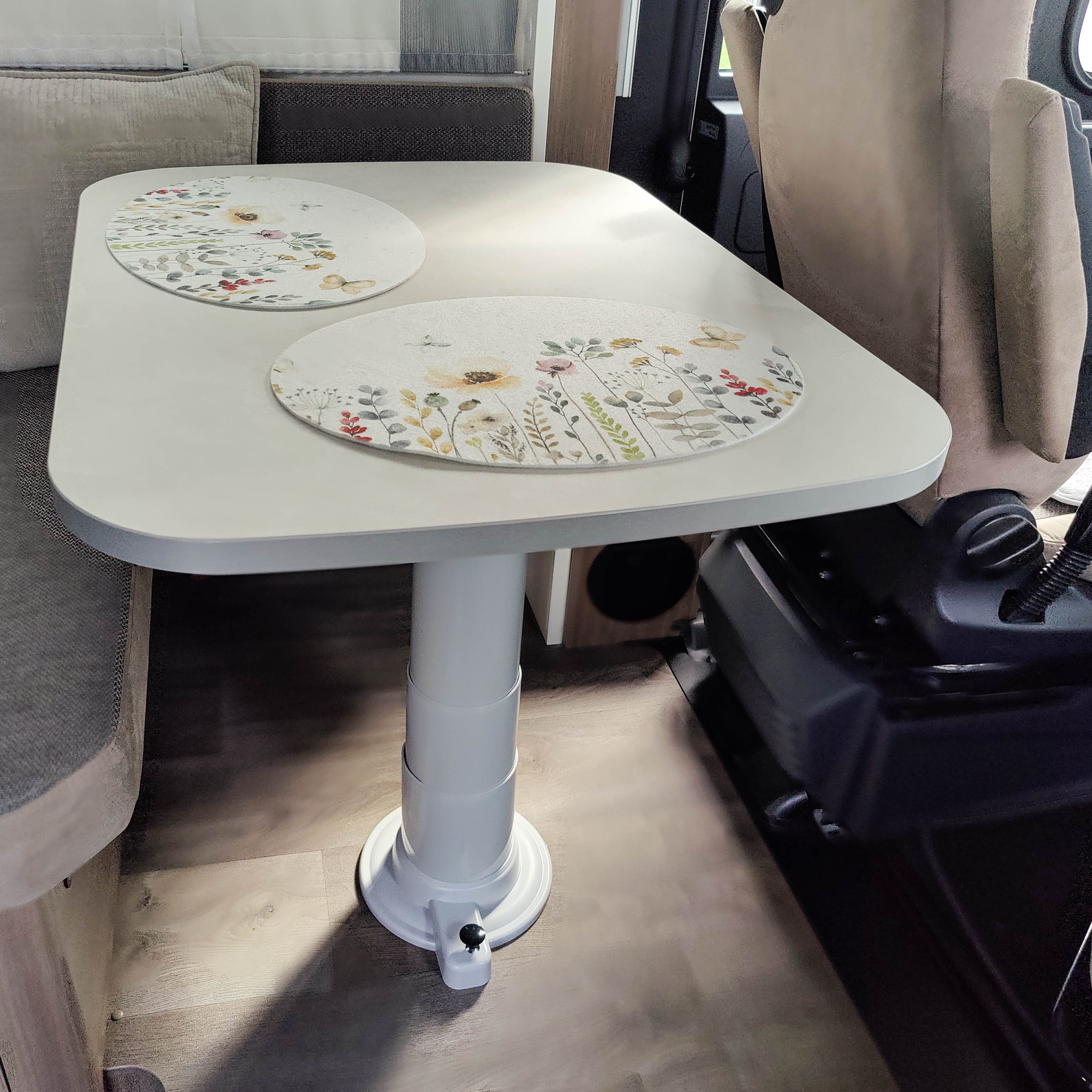 Relaxed sleep instead of wobbly dreams! Our wooden T-bed supports in a set of 4 provide the necessary stability and ideal weight distribution when your tabletop becomes a cozy sleeping surface. Thanks to the clever T-shape, the floor remains free of unsightly pressure points. When not in use? Simply nest them together and stow them away to save space - ideal for mobile use.Add the finishing touch to your lounge with the Camperboards motorhome table.