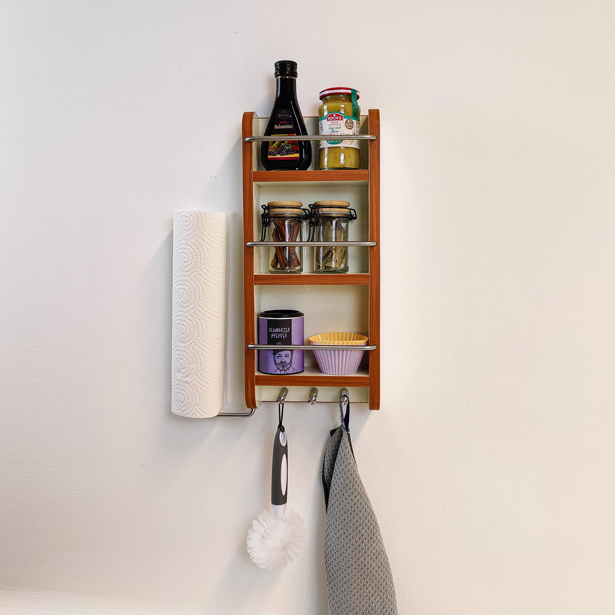 Motorhome kitchen shelf with kitchen roll holder